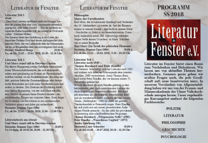 Literatur im Fenster bietet einen Raum zum Nachdenken und Diskutieren. Wir lassen uns von aktuellen Themen herausfordern. Genauso gerne gehen wir uralten Fragen nach, die jede Gesellschaft aufs neue beantworten muss. In unserem Verständnis von Allgemeinbildung haben wir uns von der Frauen- und Männerakademie der Ulmer Volkshochschule anregen lassen. Unser regelmäßi-ges Kursangebot umfasst die folgenden Fachbereiche:
